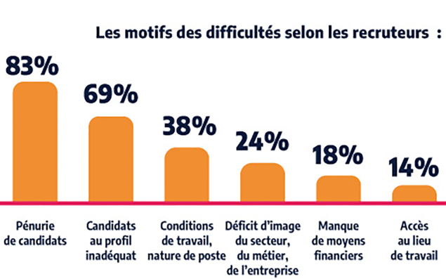 Avant Covid, nous étions plutôt autour de 40-45 %. Ce qui veut bien dire que la place du travail a changé, il y a un problème de dialogue entre les entreprises et les candidats. Évidemment, il n'y a pas une cause unique mais, comme nous le montre l'enquête, les chefs d'entreprise disent manquer avant tout de candidats et de profils adaptés. Du côté des demandeurs d'emploi, on peut imaginer qu'ils cherchent autre chose que ce qu'ils cherchaient traditionnellement. Le sujet de l'attractivité des offres se pose très certainement.