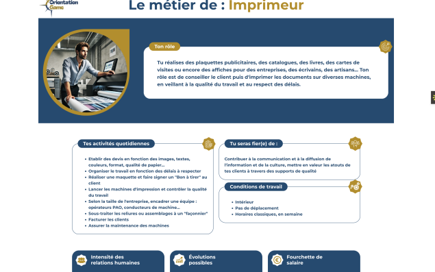 Sur Orientation game, ABP-Talents alimente les fiches métiers tous les trois mois "avec les métiers émergents, précise Sophie Palacios, afin d’être vraiment en lien avec les besoins des entreprises qui recrutent. Il y a aujourd’hui 300 fiches, nous visons les 400 d’ici 2026". La dirigeante espère pouvoir compter une vingtaine d’adhérentes d’ici la fin de l’année.