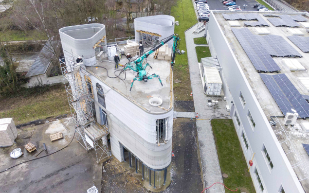 Du haut de ses trois étages, l’avenir de la construction nous contemple. C’est en tout cas une spectaculaire prouesse réalisée par Constructions-3D que cette tour de 14 mètres de haut, "imprimée" en quelques jours seulement grâce à la MaxiPrinter, l’imprimante à béton développée par la start-up. Elle est actuellement, selon la start-up, le plus haut bâtiment du monde réalisé par impression béton.