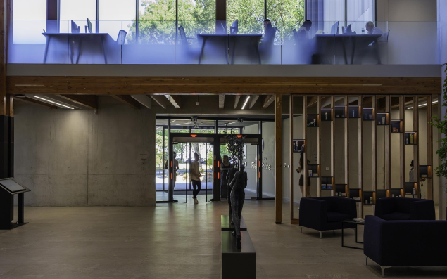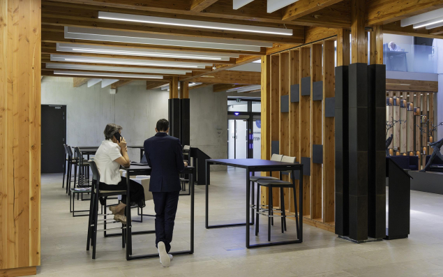L’aménagement intérieur du bâtiment a été conçu pour faciliter les échanges entre les collaborateurs d’une même équipe, avec des open spaces, ainsi qu’entre les différentes équipes, avec des parcours fluides d’un espace à l’autre. Eric Ducournau, PDG du groupe, commente ces choix : "Les structures verticales sont aujourd’hui dépassées. Les problèmes à résoudre, pour une entreprise internationale comme la nôtre, sont beaucoup plus complexes que par le passé. Cela nécessite de trouver des solutions à plusieurs et, donc, de créer les conditions nécessaires à la collaboration."