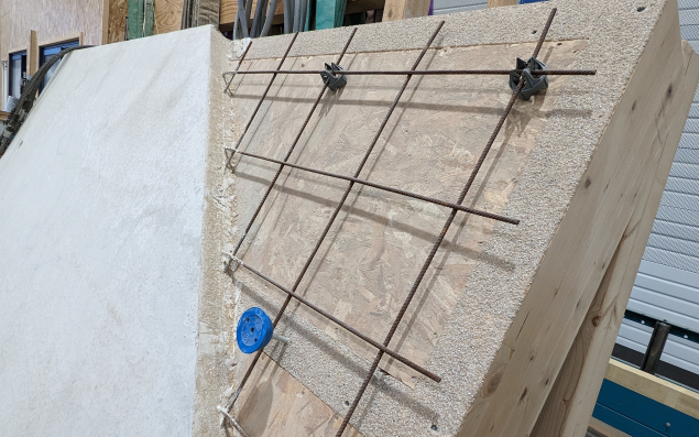 Sur sept centimètres d’épaisseur, le béton est coulé sur un support bois de 2,40 mètres de large pouvant mesurer de six mètres à quinze mètres de long. Des passages de gaines sont anticipés. Sous une seconde marque, Hybrimur, des faux bardages imitation bois sont proposés en plusieurs coloris, des leds peuvent être incrustées. Ces façades sont fabriquées chez le partenaire de conception, Jousselin, une entreprise du Maine-et-Loire située à 30 kilomètres.