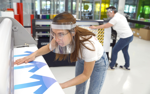 C’est en fabriquant une protection en plexiglass pour un commerçant de son village que le chef d’entreprise fait le pari de se positionner sur ce marché. Très vite, Direct Signalétique alerte ses clients parmi lesquels des collectivités, des hôpitaux ainsi que des entreprises sur sa reprise d’activité et voit ses commandes exploser à travers toute la France : « La demande est montée en flèche. Nous sommes passés du calme plat à la tempête et avons remis nos trente salariés sur le pont ». La mise en œuvre des mesures barrières a été facilitée par la surface de 2 000 m2 du site de production et aucun cas n’a été suspecté dans l’entreprise. Néanmoins, le couple de dirigeants a rencontré des difficultés pour se doter de plexiglas et de verre. « Ça a été très compliqué à gérer car nous avions des commandes, mais pas de matière. Nous avons été obligés d’acheter du plexiglass à l’étranger pour assurer la demande », reconnaît le chef d’entreprise, qui a choisi de ne pas recruter durant le pic de production.