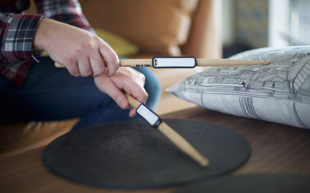 Des solutions comme la batterie acoustique ont déjà été développées, mais Jérôme Dron veut aller plus loin en proposant de jouer avec de simples baguettes connectées, sans batterie. Couplées à une application sur smartphone, celles-ci permettent de s'entraîner n'importe où et sur n'importe quel support, le tout en gérant le volume sonore. Il suffit à l'utilisateur d'indiquer à l'application qu'un coussin fait par exemple office de caisse claire et un livre, de cymbale. Les baguettes sont équipées de capteurs de 13 grammes, suffisamment légers pour ne pas gêner le jeu. Quant au son, il est tiré de banques de sons de batterie. L'engouement pour cette solution a déjà été testé, au printemps dernier, sur la plate-forme de crowdfunding Kickstarter : 655 contributeurs ont engagé 103 070 euros pour soutenir le projet, sachant que l'objectif du créateur était d'atteindre les 100.000 euros.