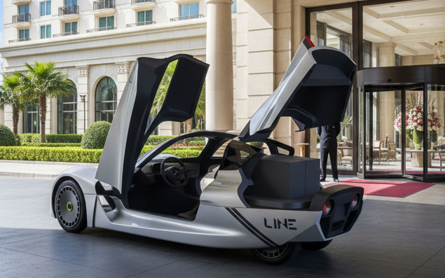 Leur démonstrateur "Line" est un coupé deux places de moins de 500 kg, d’une autonomie de 500 km au design en forme de goutte d’eau, qui permet, en réduisant la surface frontale du véhicule, de minimiser la traînée (la résistance qu’oppose une voiture à l’air lorsqu’elle se déplace).
