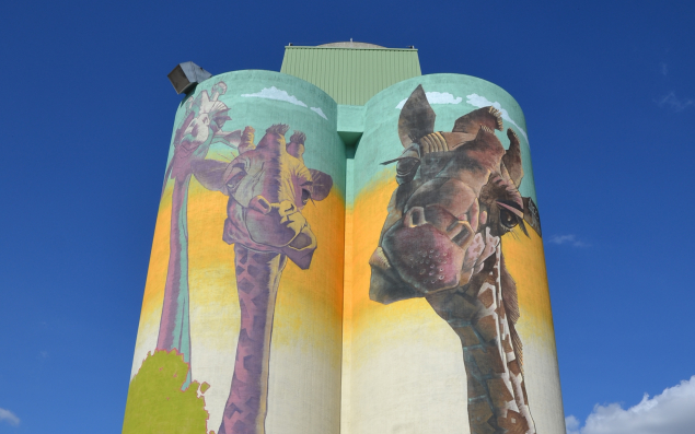 Comme ces trois girafes peintes sur le silo de Terrena à Laval, inaugurées ce 6 juillet ?