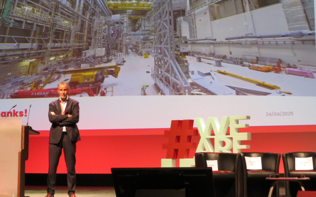 "Nous allons prouver que nous pouvons créer une si complexe infrastructure tous ensemble, nous sommes sur le bon chemin", affirme à l’assistance d’industriels Pietro Barabaschi, soutenu par une vidéo qui atteste du progrès de l’assemblage du futur tokamak.