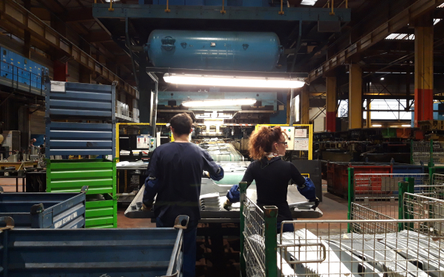 L’usine du Theil est en effet un Gargantua industriel. 900 salariés travaillent sur les différentes lignes d’emboutissage à froid, de formage à chaud, de découpe laser, d’assemblage et de cataphorèse, réparties dans un bâtiment de 70 000 m². Ses machines dévorent chaque jour 650 tonnes d’acier et l’usine revendique une consommation électrique trois fois supérieure à celle des 1 700 habitants du Theil-sur-Huisne, brûlant autant de gaz que la ville toute proche de La Ferté-Bernard. « Sur nos métiers, nous sommes la plus grosse usine de France et l’une des cinq plus importantes en Europe », assène son directeur.