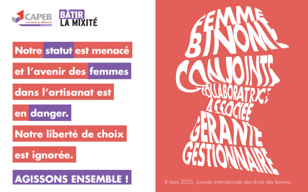Près de 26 000 femmes sont "conjoints collaborateurs" dans le secteur du bâtiment. Un statut souple et moins coûteux pour l'entreprise que le statut de conjoint salarié ou associé, "largement choisi dans les TPE", selon la Capeb. Il permet au conjoint marié ou pacsé qui participe à l'activité de l'entreprise de bénéficier d'une couverture sociale, sans être rémunéré, à la différence du conjoint salarié. Le collaborateur ne bénéficie en revanche pas d'assurance chômage et doit adhérer au régime d'assurance vieillesse du dirigeant pour cotiser pour sa retraite.