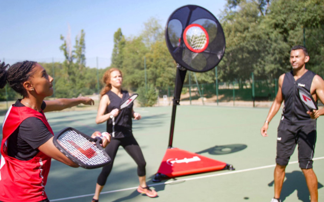 Ce jeu de raquettes collectif a été inventé sur la Côte d’Azur par un artiste, Chris Oven, quatre ans plus tôt. Il se pratique, à partir de 6 ans, par équipe de 6 joueurs, en quatre périodes de cinq minutes et se joue sur toutes surfaces grâce à un équipement mobile et innovant. C’est là qu’intervient précisément RZ Ball. « Notre problématique majeure, surtout dans les Alpes-Maritimes, tient au foncier : il n’y a pas de place. Nous avons donc décidé de créer un terrain mobile qui tient dans deux valises qui contiennent les cibles, les raquettes, les balles, les chasubles et les bandes de délimitation adaptées à toutes les aires de jeux », explique Christophe Lehman, président de la start-up et proche du concepteur de ce sport. « On peut donc jouer partout, en intérieur ou en extérieur, sur un terrain de basket, sur l’herbe ou à la plage. Nous avons tout misé sur la qualité du matériel que nous avons mis quatre ans à développer. Il est fabriqué pour la plus grande partie en Europe et assemblé dans un ESAT à Antibes. »