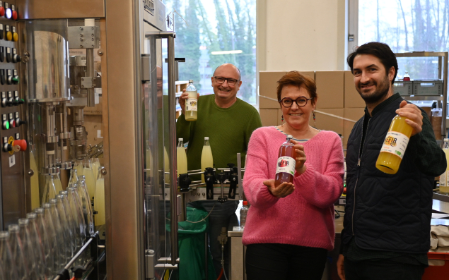Située au fond de la zone d’activité de Bischwiller (Bas-Rhin), l’entrée du Labo Dumoulin n’est pas simple à trouver. Les dizaines de palettes de contenants en verre entreposées devant l’entrée servent de repère, mais l’entreprise de fabrication de kéfir, cette boisson à base de fruits et de produits fermentés, est à l’étroit dans ses locaux. "Ils sont devenus trop petit face à la croissance de notre activité ces dernières années", explique Aurélien Fabas, co-fondateur de l’entreprise avec Sylvie et Pascal Dumoulin.