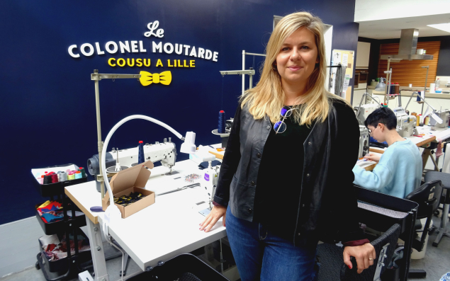 Niché dans une ruelle de Lille Saint-Maurice à l’abri des regards, l’atelier de Colonel Moutarde connaît une activité intense. Ici, une petite armée de couturières et couturiers produit, chaque année, 50 000 nœuds papillons. Pourtant, il y a 5 ans, personne n’imaginait un tel succès, pas même les fondateurs. « Colonel Moutarde a été créé avec seulement 300 € et une machine à coudre. Au départ, c’était juste pour rire », racontent Clémence Yon et Rémi Duboquet.