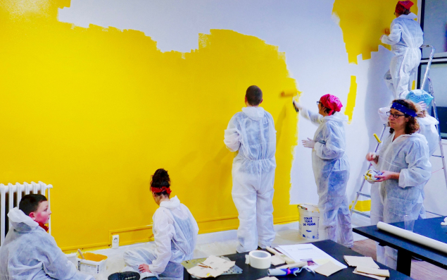 De plus en plus d'entreprises optent pour le mécénat de compétences, qui permet de mener des actions peu coûteuses tout en impliquant des salariés très demandeurs. Ici, des salariés de Bouygues donnent un coup de frais à la Maison d'Enfants de Croix (Nord) — Photo : L'Engagement Simone