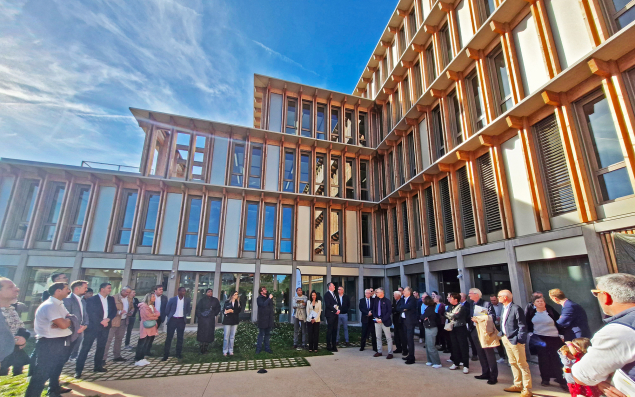 Le chantier a démarré en janvier 2024. À partir de janvier 2026, Méduane Habitat pourra accueillir ses salariés dans son nouvel écrin, flanqué de son nouveau logo. L’immeuble a été inauguré ce 7 octobre 2025. Le futur siège social de l’entreprise, doté d’une structure en escalier, s’élève sur cinq étages dans le quartier de la gare de Laval. Sur une surface totale de 2 700 m2, il comprend 86 bureaux, six salles de réunion, un réfectoire de 90 m2, des espaces détente, une terrasse, etc. La direction a choisi de ne pas organiser ses locaux en open space, mais la conception du bâtiment rend facilement modulable l’aménagement intérieur.