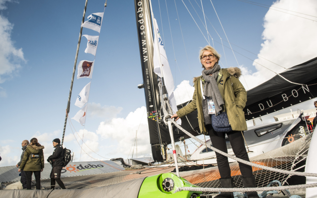 Patrica Brochard, co-présidente de Sodebo, lors du départ de la Transat Jacques Vabre en 2017 — Photo : Vincent Curutchet/Sodebo