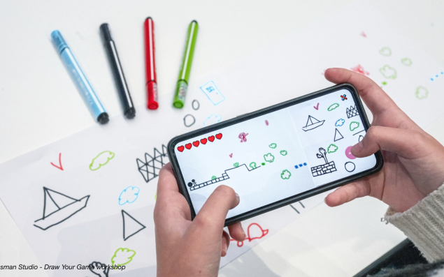 Draw Your Game, l’un des jeux qui fait partie de sa dizaine de jeux en exploitation, donne la part belle à l’imaginaire. À partir d’une simple feuille de papier et de quelques coups de feutres, il est possible de créer des jeux de plateforme à la Donkey Kong ou Mario Bros.
