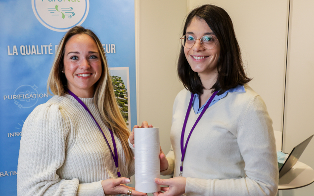 PureNat a breveté, en mars 2022, un système de fil à coudre “photocatalytique” permettant d'assainir l'air intérieur en bloquant mais aussi en détruisant les polluants chimiques, les virus et les bactéries. "C'est le premier filtre deux-en-un, et il n'aura pas besoin d'être changé tous les six mois mais seulement tous les cinq ans", souligne Manon Vaillant. Grâce à sa flexibilité, le fil de PureNat peut être intégré dans des filtres classiques de purificateurs d'air ou dans des objets du quotidien, tels que des luminaires ou des correcteurs acoustiques. “Le matériau biomimétique inventé par Natacha Kinadjian Caplat imite les alvéoles des algues marines grâce à sa porosité, explique Manon Vaillant. Cela permet de plus grands échanges entre les matériaux et l'air. L'agent purifiant utilisé est connu, mais le fait de l'avoir intégré dans un fil est vraiment révolutionnaire.”