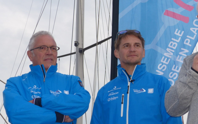 Olivier Toupin (à gauche), dirigeant de ConceptTy à Dinan (22), est un passionné de voile. Il cofinance "Solidaires en peloton pour l’Arsep", skippé par Thibaut Vauchel-Camus — Photo : © Concept Ty