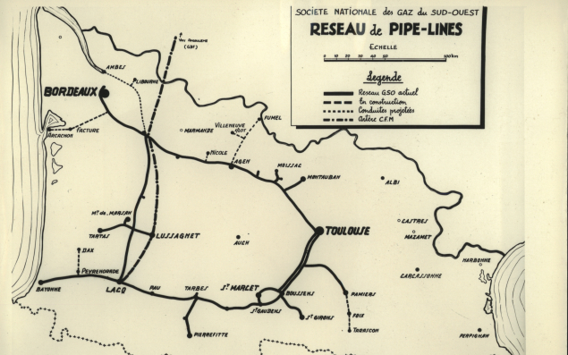En 1945 la Société nationale des gaz du Sud-Ouest (SNGSO, qui deviendra GSO, puis TIGF puis Teréna), voit le jour pour assurer la distribution du gaz de Saint-Marcet, puis celui du plus grand gisement de gaz naturel découvert en France à Lacq (Pyrénées-Atlantiques). Cette découverte entraîne le développement industriel et technologique d’un bassin en pleine réindustrialisation.