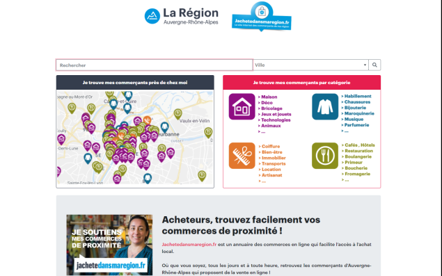 Pour soutenir les commerces fermés à l’occasion du deuxième confinement, le président du Conseil régional d’Auvergne Rhône-Alpes, Laurent Wauquiez, avait annoncé son intention de créer un « Amazon régional ». « Nous voulons créer un site de vente en ligne 100 % Auvergne Rhône-Alpes », annonçait-il début novembre. Le coup de communication débouche finalement sur un annuaire en ligne des commerces de la région Auvergne-Rhône-Alpes via un site, baptisé Jachetedansmaregion.fr, dévoilé le 3 décembre. « C’est un porte-avions que l’on offre aux commerçants de proximité qui disposent déjà d’une solution en ligne », assure Laurent Wauquiez.