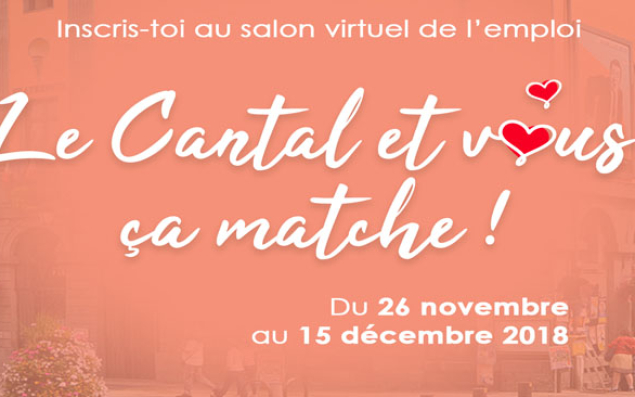 Du 26 novembre au 15 décembre, la CCI du Cantal, en partenariat avec Pôle Emploi, organise le Salon Virtuel de l'Emploi. L'an passé, ce job dating en ligne avait mobilisé 2 700 inscrits et plus de 500 candidats pour, au final, une trentaine d'offres d'emploi qui avaient trouvé preneur. Cette année, 150 offres d'emplois, proposées par 80 entreprises cantaliennes, allant du groupe industriel international à la PME familiale, sont à pourvoir. Inscriptions sur www.salonenligne.pole-emploi.fr/candidat/