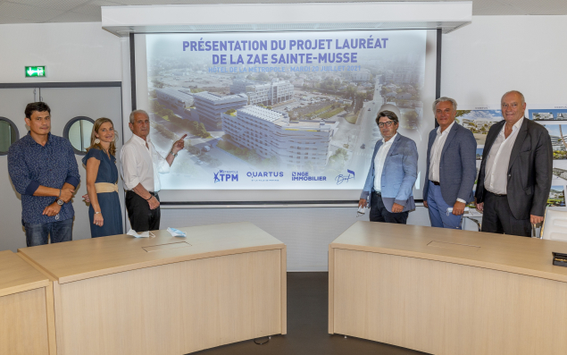 Depuis l’ouverture en 2011 de l’hôpital Sainte-Musse, puis de la clinique Clinea - Institut Hélio Marin en 2019, le quartier Sainte-Musse, situé au sud-est de Toulon, poursuit sa transformation. La métropole a lancé un nouveau projet structurant pour le quartier et désigné le groupement Corpus comme lauréat de l’appel à projets présenté en février 2021. Ce groupement, composé du promoteur Quartus, de NGE Immobilier et du groupe BMF a été retenu pour l’acquisition de deux lots de 2 400 et 4 774 m² et la réalisation d’un programme architectural confié à Thierry Ami (Flex Architectes). Au total 45 millions d’euros de fonds 100 % privés (dont 30 M€ de travaux) seront investis pour réaliser ce projet composé d’un pôle santé, d’un établissement hôtelier et de locaux d’activités et commerces, permettant la création de 120 emplois directs. Les bâtiments, dont la livraison est prévue pour la fin d’année 2024, seront labellisés Bâtiment durable méditerranéen et Haute Qualité Environnementale.