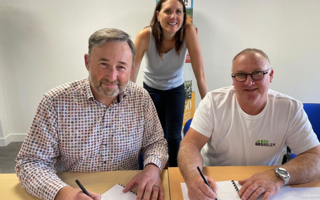 Très engagées depuis longtemps sur les aspects éthiques et responsables, les entreprises finistériennes Biobreizh (27,5 M€ de CA) et Poder (35 salariés, 18 M€ de CA) ont signé une convention de mise en marché dans le but de contribuer à renforcer la filière bio bretonne grâce à la planification de la production. La coopérative Biobreizh s’engage ainsi à produire des fruits et légumes 100 % bio et traçables. Le grossiste Poder s’engage quant à lui à commercialiser la production de la coopérative