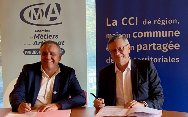 Les deux chambres régionales, Chambre de commerce et d’industrie et Chambre de métiers et de l’artisanat Paca, qui se positionnent au service de 550 000 entrepreneurs, ont signé une convention de partenariat d’une durée de quatre ans. L’objectif est de renforcer leur collaboration opérationnelle sur des enjeux stratégiques, de détecter les synergies efficientes et de déployer davantage d’actions communes. Pour Philippe Renaudi, président de la CCI Paca, il s’agit, d’ici à 2026, de "travailler de concert sur des enjeux comme l’international, l’apprentissage, le foncier économique…"
