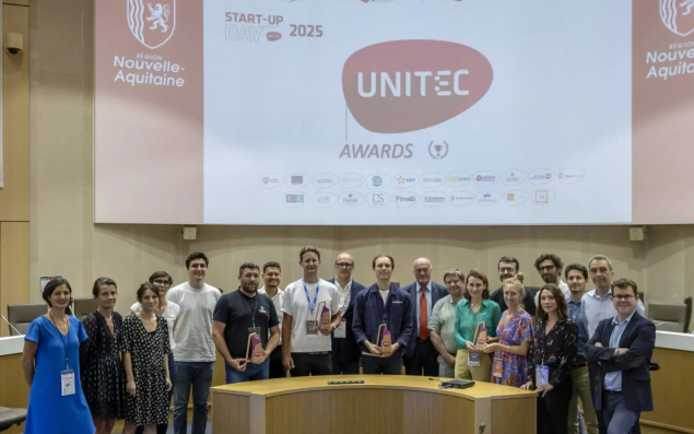 Le 26 juin dernier lors de la septième édition du Start-Up Day, l'incubateur girondin Unitec et ses partenaires ont récompensé 5 start-up dans 5 catégories : croissance, développement commercial, levée de fonds, deeptech et Néo Terra (du nom de la stratégie environnementale régionale). Les lauréats sont, dans l'ordre de ces prix : la start-up Klark, basée à Talence, qui automatise la réponse aux demandes clients grâce à l'IA; la société B2G, qui fabrique à Saint-Geniès (Dordogne) des réducteurs de vitesse pour les industriels; la deeptech girondine Keysom, éditrice d'un logiciel de conception de processeurs pour les industriels de l'électronique qui a levé 4 millions d'euros en octobre 2024 et la start-up Doxanano qui développe un médicament en chimiothérapie commandée à distance contre les cancers. Enfin, la start-up Edonia, qui développe des ingrédients alimentaires à base de microalgues, a obtenu le prix Néo Terra.