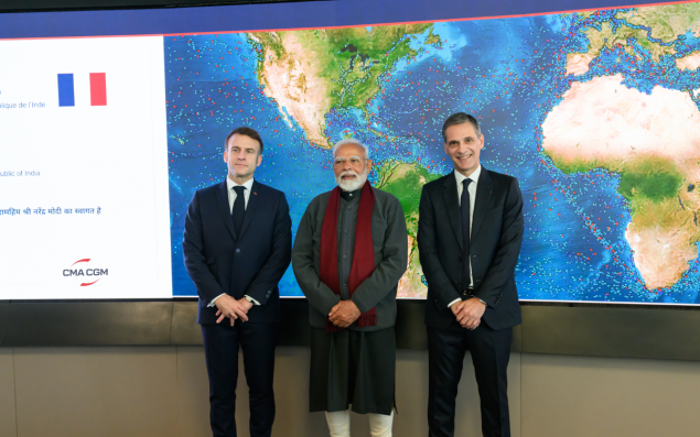Dans le cadre de la visite d’État en France, et notamment à Marseille, du Premier ministre indien Narendra Modi et du président de la République française Emmanuel Macron, Rodolphe Saadé, PDG groupe CMA CGM a rappelé sa volonté de contribuer au corridor économique IMEC (India-Middle East-Europe Economic Corridor). Dans le cadre de ce projet de route commerciale et de route numérique visant à relier l’Inde à l’Europe, CMA CGM (160 000 salariés) entend jouer un "rôle clé" : présent depuis 34 ans en Inde, et fort de 17 000 collaborateurs, le groupe marseillais relie le pays au reste du monde grâce à 18 services maritimes effectuant des escales hebdomadaires. Il a par ailleurs investi dans les terminaux du port de Nhava Sheva Freeport (NSFT), à proximité de Bombay, et du port de Mundra. Et, sa filiale Ceva logistics est actuellement présente dans 105 sites répartis dans 31 villes en Inde, avec environ 900 000 m² d'espace d’entreposage. Le Grand port maritime de Marseille, quant à lui, se voit en porte d’entrée de l’Inde vers l’Europe. Pour le président du Conseil de surveillance, Christophe Castaner, "ce projet de corridor de 6 400 km place le port de Marseille Fos au cœur des échanges commerciaux de demain".
