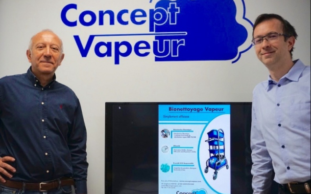 La crise sanitaire fait les affaires de certaines entreprises. C'est le cas de la TPE stéphanoise Concept Vapeur cofondée en 2013 par Philippe Saby et Jean-Christophe Martinez. Depuis le début de la pandémie de covid-19, le fabricant de nettoyeurs vapeurs a vu ses ventes progresser de 20%. Il faut dire qu'avec sa gamme de nettoyeurs vapeurs, certifiés Afnor pour la désinfection (NFT 72-110), Concept Vapeur offre une garantie "virucide en 1 seconde", qui intéresse tout particulièrement les hôpitaux, EHPAD et collectivités (collèges, crèches, cuisines, etc.). Durant le confinement, l'AP-HM (Assistance publique-Hôpitaux de Marseille), qui possédait déjà 50 nettoyeurs Concept Vapeur, a d'ailleurs commandé dix nouvelles machines à la TPE stéphanoise.