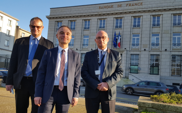 À quelques semaines de son départ en retraite le 10 janvier, Denis Kervella, directeur départemental de la Banque de France dans le Finistère de puis 2017, a présenté ce jeudi son successeur. Il s’agit d’Éric Le Belle, 53 ans, entré à la Banque de France en 1991 et qui arrive à Brest après des passages à Paris, Bordeaux, Angoulême, Vannes ou encore le Mans. Dernièrement, il occupait le poste de directeur délégué Centre Bretagne, rattaché à Vannes et Saint-Brieuc. Parmi les dossiers qui l’attendent à son arrivée, Éric Le Belle cite notamment la nouvelle échelle de cotation des quelque 4 000 entreprises finistériennes dont le chiffre d’affaires dépasse les 750 K€, ainsi que la réorganisation entraînée par la fermeture du service de caisse de l’antenne brestoise, qui va engendrer le reclassement de sept agents. Et si la grande majorité des signaux sont actuellement au vert dans l’économie finistérienne, avec notamment une baisse significative de près de 40 % des défaillances d’entreprises à l’automne, la Banque de France se met malgré tout en ordre de marche afin de d’être en mesure de répondre à une éventuelle hausse des demandes de médiation de crédit de la part des 2 à 3% d’entreprises, selon les estimations, qui éprouveraient des difficultés à faire face aux échéances du PGE.