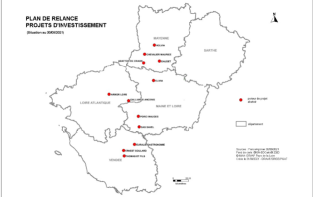 Treize abattoirs des Pays de la Loire ont été soutenus à hauteur de 11, 1 millions d'euros (sur une enveloppe nationale de 104 M€) dans le cadre de France Relance. Le plan de modernisation des abattoirs est, en effet, un dispositif majeur de son volet agricole. Il poursuit plusieurs objectifs : accompagner les entreprises dans l'amélioration de la protection des animaux, de la sécurité au travail des conditions sanitaires et environnementales, renforcer la compétitivité et participer au développement de l'emploi.