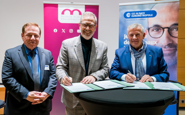 La Chambre de Commerce et d’Industrie Alsace Eurométropole a signé une convention cadre de partenariat pour le soutien à l’économie locale avec Mulhouse Alsace Agglomération (m2A) pour les deux prochaines années. Son objectif est de stimuler le développement économique sur l’ensemble du territoire en accompagnant les projets d’implantations et de développement. Ce partenariat se traduira par un programme d’actions déployé autour du renforcement de l’attractivité économique ; de la transition industrielle et écologique ; l’implantation d’activités, le développement des entreprises et la création d’emplois ainsi que la planification et la requalification des zones commerciales.