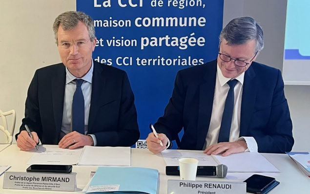 Philippe Renaudi, le président de la CCI Paca et le Préfet de la région, Christophe Mirmand, ont cosigné la Convention d’Objectifs et de Moyens (COM) qui engage, structure et priorise les actions du réseau CCI sur 5 ans. En région, le réseau CCI a accueilli 100 000 entrepreneurs en 2023 et entend poursuivre l’accompagnement de ses ressortissants à travers 6 axes prioritaires, fixés par cette convention d’objectifs et de moyens. Il s’agit pour la CCI Paca d’accompagner la transition écologique des entreprises et le développement durable des territoires, d’accompagner les entreprises dans leurs transitions numérique, économique et RH, d’anticiper, orienter, former et recruter, d’entreprendre et transmettre, d’accompagner les entreprises à l’international et, enfin, de représenter les intérêts des entreprises.