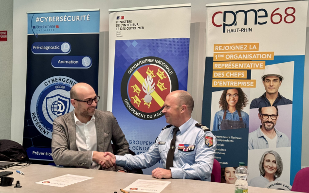 La CPME du Haut-Rhin et le groupement de gendarmerie départementale du Haut-Rhin ont signé un partenariat, d’une durée de trois ans et renouvelable, visant à renforcer leur coopération afin d’ancrer une culture de la sécurité au sein du tissu économique local pour sensibiliser aux risques de malveillance, de cybercriminalité et aux violences économiques. Ce partenariat prévoit la désignation d’interlocuteurs dédiés au sein de la CPME 68 et de la gendarmerie pour faciliter la communication et les échanges d’informations, des actions de sensibilisation au travers d’ateliers de prévention auprès des adhérents du syndicat patronal ainsi que la mise en place du dispositif "Opération tranquillité entreprise et commerce" via des opérations de sécurisation ciblées.