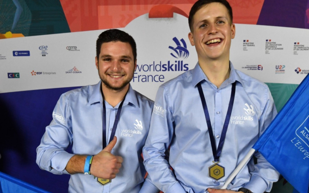 Ils sont revenus couverts d’or de la finale nationale des Olympiades des métiers, ou WorldSkills à l’international, qui s’est déroulée à Lyon du 13 au 15 janvier : Nicolas Renard, 21 ans, constructeur de routes en formation au BTP CFA Ardennes et en apprentissage en BTS travaux publics dans l’entreprise Guintoli, et Ugo Humbert, canalisateur de 21 ans, en CDI au sein de l’entreprise SCATP, après l’obtention d’une licence pro conduite de chantier à l’IUT Robert Schuman d’Illkirch-Graffenstaden, ont décroché ensemble une médaille d’or dans la catégorie "aménagement urbain et réseaux de canalisations". Un résultat dont se félicitent les représentants de la filière dans la région, Hervé Noël, Thierry Klotz et Thierry Ledrich, respectivement présidents de la Fédération régionale des travaux publics Grand Est et de Champagne-Ardenne, d’Alsace et de Lorraine, qui saluent la "brillante réussite du binôme venu du Grand Est" et vont désormais suivre de près leurs jeunes champions qualifiés pour représenter la France à Shanghai en octobre 2022, lors de la finale mondiale des "WorldSkills Compétition".