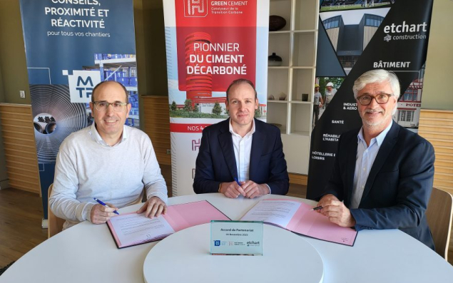 Le groupe basque Matériaux Travaux Publics (MTP), société de négoce en matériaux pour les entreprises de TP en Aquitaine et Occitanie, a signé un partenariat avec le vendéen Hoffmann Green Cement Technologies (13,4 M€ de CA 2024, 49 salariés), producteur de ciments sans clinker. Désormais, MTP, filiale du groupe basque Etchart, propose les ciments décarbonés de Hoffman Green, qui promettent une empreinte carbone divisée par cinq comparés à des ciments traditionnels. Cette nouvelle collaboration s’inscrit dans la stratégie de Hoffmann Green visant à diversifier ses marchés et à étendre l’usage de ses ciments grâce au large éventail de secteurs d’activité adressés par MTP. Créé en 1988 à Anglet (Pyrénées-Atlantiques), MTP s’appuie sur 200 collaborateurs et 22 agences, avec un portefeuille de 5 500 références en stock et près de 250 000 m² de surface de stockage. Il accompagne grands groupes, artisans, collectivités et professionnels agricoles.
