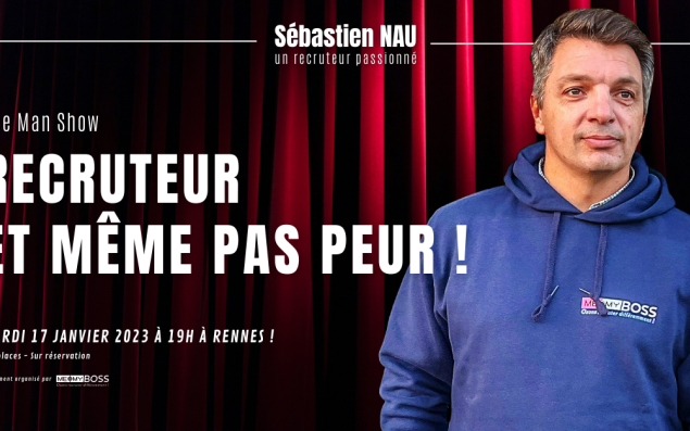 Dirigeant et fondateur de l'agence de recrutement bretillienne Me & My Boss, Sébastien Nau sera bientôt sur scène. Le 17 janvier 2023, il présentera une conférence spectacle intitulée "Recruteur et même pas peur!" à Rennes (à la Maison des Associations, 19h, sur réservation). Passionné par son métier, à l'aise en public, il anime déjà des conférences, webinars, événements autour des problématiques du recrutement. Cette-fois, l'exercice promet d'aborder le sujet de "façon humoristique et didactique, tout en créant de l'émotion", annonce l'équipe de Me & My Boss, qui a aidé le dirigeant à monter ce one-man show inédit.