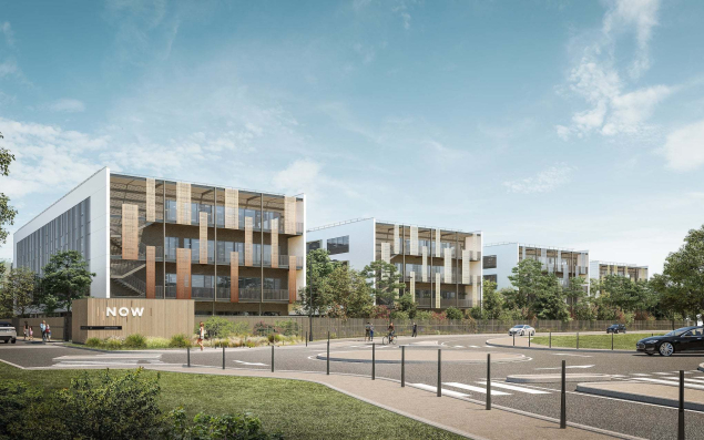 Imaginé par les agences Label Architecture et Sight, le Campus NOW sʼétend sur 16 000 m² et sʼéquilibre entre 4 bâtiments, dont un est déjà occupé par le groupe Alten. Au sein du bâtiment D, en R + 3 et d’une surface de 5 000 m2, les plateaux modulables ont été conçus pour être aménagés en open space ou cloisonnés sur-mesure. Ils s’ouvrent sur des coursives, offrant un espace de pause extérieur à chaque étage, complétés par un rooftop de 150 m2. La livraison du bâtiment est prévue pour mars 2026.