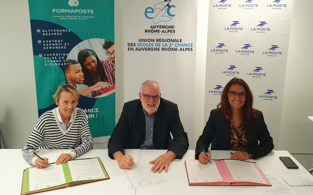 Le groupe La Poste et son centre de formation en alternance Formaposte viennent de signer à Lyon une convention régionale de partenariat avec les Écoles de la Deuxième Chance Auvergne-Rhône-Alpes pour favoriser l’insertion professionnelle sociale et citoyenne de jeunes les plus éloignés de l’emploi. Le partenariat a pour objectif d’instaurer une collaboration entre le Groupe La Poste et ses filiales, Formaposte et les E2C de la région Auvergne-Rhône-Alpes afin d’accompagner les jeunes dans la réalisation de leurs projets tout en répondant aux besoins de recrutement du Groupe La Poste dans les territoires. Des offres d’emploi, des conventions d’apprentissage et de stage, des visites de site et des présentations de métiers seront notamment proposées aux élèves des E2C de la région.