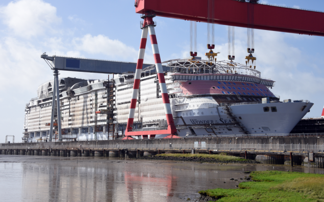 Wonder of the Seas, le plus grand paquebot du monde, quitte les Chantiers de l’Atlantique de Saint-Nazaire où il a été construit (4 000 salariés, 1,8 milliard d’euros de CA en 2019) vendredi 5 novembre après-midi. Wonder of the Seas (362 m de longueur, 64 de largeur, 2 807 cabines) appareillera pour Marseille, qu’il rejoindra le 9 novembre. Son exploitation commerciale est prévue en mars 2022. Le bassin dans lequel le navire a été achevé accueillera le lendemain la poutre du futur Très Haut Portique (1 050 tonnes de capacité de levage, 81 m de haut et 130 m de large) dont le chantier naval commencera l’assemblage dans les prochaines semaines.