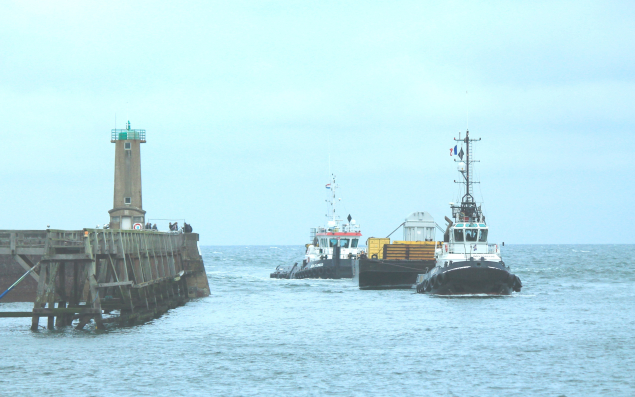 Le port de Fécamp a réceptionné une barge maritime de l’armement hollandais Muller en provenance de Schiedam aux Pays-Bas, transportant un transformateur pesant 250 tonnes destiné à la centrale nucléaire EDF de Paluel. Amenée par deux remorqueurs de haute mer, la barge de 66 m de long a été reçue au quai de la Marne où son imposante cargaison a été débarquée en Roll on/Roll off (transport par bateaux spéciaux appelés rouliers) sur ce site qui permet l’accueil, la manutention et le stockage temporaire des colis lourds ou de grandes dimensions. Grâce à un pont financé par EDF et construit il y a une dizaine d’années, ce terminal est directement connecté au réseau routier via lequel le transformateur a rejoint sa destination finale. La Station de pilotage du Havre-Fécamp, les entreprises Humann et Taconet et Sea Invest sont notamment intervenues aux divers stades de l’opération. En 2023, le Port de Fécamp a enregistré 84 escales de navires qui ont généré un trafic atteignant 231 000 tonnes (dont 190 000 tonnes à l’importation).