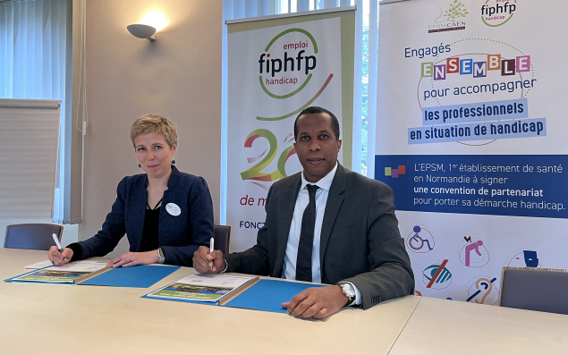 L’établissement public de santé mentale de Caen (EPSM) a renouvelé son partenariat avec le Fonds pour l’insertion des personnes en handicapées (FIPHFP) en faveur de l’inclusion des personnels en situation de handicap, pour la période 2025-2027. Après un premier partenariat initié en 2022, les actions menées par les deux partenaires ont permis le recrutement de 21 personnes en situation de handicap, avec un investissement de 450 000 euros aux postes de travail et des actions de formation et de sensibilisation des professionnels à la question du handicap. Pour ce nouveau partenariat, qui bénéficie d’un montant d’investissement de plus de 406 000 euros, l’EPSM (équipe pluridisciplinaire de 1381 professionnels) a pour objectif de recruter dix agents en situation de handicap dont une personne en contrat d’apprentissage. Des bilans de compétences et/ou formations sont également au programme pour accompagner les personnels dans leur projet professionnel. L’établissement affiche un taux d’emploi de personnes en situation de handicap supérieur à 7 %.