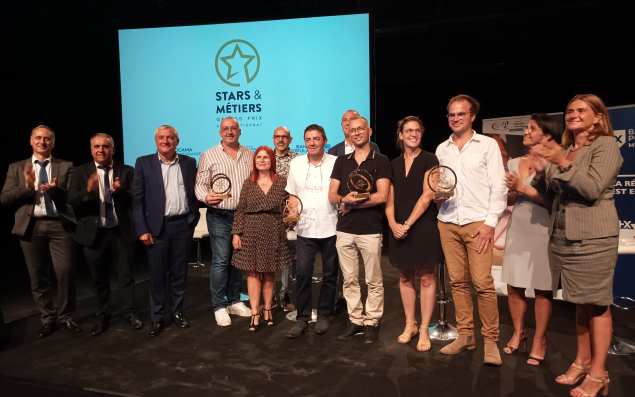 Créés en 2007, les prix Stars & Métiers de la Chambre des Métiers et de l’Artisanat Paca ont récompensé quatre chefs d’entreprise des Bouches-du-Rhône. Le Grand Prix Innovation est revenu à Félix Hegenbart, de la menuiserie haut de gamme Hegenbart (5 salariés, CA : 458 000 euros), créée en 2011 à Peypin, à l’origine d’un concept de mini-cuisine multifonctionnelle et transformable. Le Grand Prix Responsable a été attribué à Axel Disgand, de la société ADSI (11 salariés, CA : 706 000 euros), à Gémenos, seule entreprise de travaux sous-marins à avoir participé plusieurs fois au nettoyage du Vieux-Port de Marseille. Le Grand Prix Entrepreneur a été remis à Yann-Loïc Esnault, de l’entreprise aixoise de BTP AEP Travaux (20 salariés, CA : 3,2 millions d’euros), qui prévoit d’ouvrir une antenne dans le Var. Le Grand Prix Exportateur a été remporté par Patrick Borel, de la société Euromair (120 salariés, CA : 24,7 millions d’euros), à Rousset, spécialisée dans la fabrication de machines à projeter. L’entreprise, qui réalise 43 % de son chiffre d’affaires à l’export dans près de 50 pays, ouvre une nouvelle usine en Espagne.