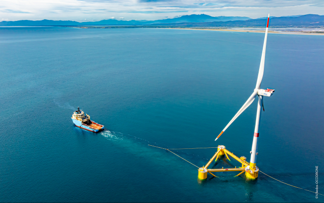 Le 4 septembre, la troisième et dernière éolienne de la ferme pilote EFGL – dont les actionnaires sont Ocean Winds (600 collaborateurs) et la Banque des Territoires-, a été installée en mer avec succès à plus de 16 kilomètres de Leucate (Aude) et du Barcarès (Pyrénées-Orientales). Cette opération, orchestrée par Ocean Winds depuis le port de Port-la-Nouvelle (Aude), marque l’achèvement du déploiement des trois premières éoliennes flottantes au large des côtes occitanes. Cette étape franchie, le lillois SDI (CA 2023 : 106 M€), filiale du groupe belge DEME (CA 20024 : 4,1 Md€, 5 900 salariés), viendra installer les câbles inter-éoliennes et assurer la connexion du câble d’export pour RTE (Réseau de transport d’électricité), prévue dans les semaines à venir. Le relais sera passé à RTE pour finaliser la connexion au réseau. Après plusieurs phases de tests, ces premières éoliennes flottantes d’Occitanie, d’une puissance unitaire de 10 MW seront mises en service fin 2025/début 2026, pour fournir de l’électricité verte à 50 000 foyers par an. Ocean Winds est une coentreprise associant Engie (73,8 Md€ de CA 2024) et le portugais EDP Renewables (2 Md€ de CA 2024).