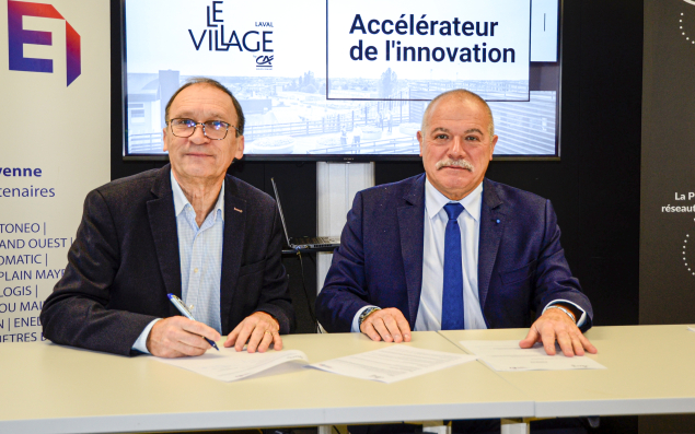 Vendredi 3 février, Bruno Lucas, président du Medef 53, et Hubert Bergue, président de la délégation départementale du Crédit agricole Anjou-Maine et président du Village by CA Laval, ont signé leur première convention de partenariat. Pour le Medef, cela représente un moyen de se rapprocher des nouvelles entreprises et de l’innovation. Quant à elles, les jeunes pousses accueillies par le Village by CA accéderont plus facilement aux informations et aux réseaux du Medef. "Il ne s’agit pas simplement d’une convention qui restera rangée dans un placard", promet Bruno Lucas. Le Village by CA Laval accompagne onze start-up.