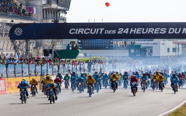 Après avoir descendu les Champs-Élysées, parcouru la baie du Mont Saint-Michel, l’île d’Yeu, Noirmoutier ou encore les rues de Marrakech, le Grand Prix Meule Bleue, organisée à l'origine par et pour les patrons vendéens, est de retour en 2024. Pour les 10 ans, l’événement se tiendra à nouveau pour la troisième fois au circuit Bugatti du Mans les 13, 14 et 15 septembre 2024. Portée par l’association AGIR (Agir Contre La Maladie) et produite par Maindron Production. Cette édition s’ouvre, pour la première fois, aux particuliers et aux personnes en situation de handicap qui pourront rouler sur les circuits du Mans à mobylette vintage ou bien en fauteuil roulant customisé. Au total, 1 000 meules et leurs équipages sont attendus sur l’enceinte du circuit Bugatti du Mans.