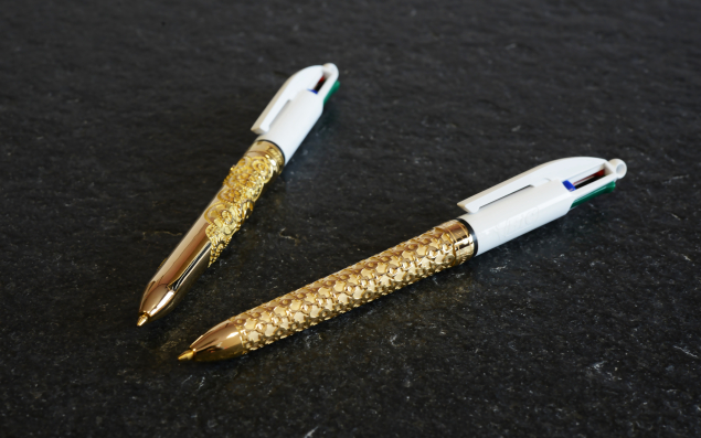 La MaisonTournaire poursuit sa stratégie de co-branding. Après les boulest Obut, les bouteilles de rhum Clément, le casque audio focal aux couleurs d'Assassin's Creed Origins, la Stan Smith d'Adidas, c'est au tour du stylo BIC 4 couleurs de faire les frais de l'appétence pour la customisation du bijoutier-joaillier ligérien (50 salariés ; 2,5 M€ de CA). Les deux marques ont décidé de s'associer pour créer deux stylos 4 couleurs en or de 18 carats. Deux pièces uniques qui seront vendues aux enchères à Paris le 20 janvier prochain par Artcurial. Les bénéfices seront reversés à l'association L'enfant@l'hôpital.