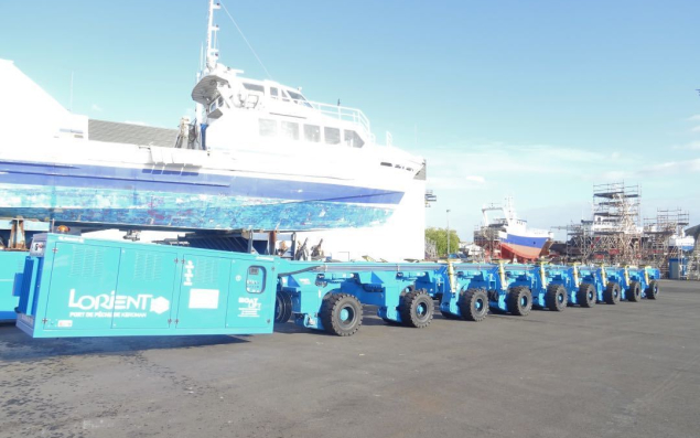 Après un premier essai concluant, l’aire de réparation navale de Keroman vient de mettre en service un tout nouveau chariot automoteur. Doté de 18 paires de roues sur une longueur de 24 mètres, cet engin téléguidé permet le déplacement de tout type de navires allant jusqu’à 300 tonnes. De quoi doubler la capacité de son prédécesseur, en fin de vie après plus de 20 ans de services. Le nouvel outil devrait ainsi faciliter les manœuvres sur un terre-plein d’environ 1,5 ha capable de recevoir une vingtaine de navires en même temps et autour duquel gravite une cinquantaine d’entreprises parmi lesquelles les chantiers finistériens Piriou et CDK, l’électronicien vendéen ECCS, mais aussi des locaux comme AML (mécanique) ou Hydrocorp (hydraulique). Montant de l’investissement : environ un demi-million d’euros pris en charge par la Sem de Lorient Keroman, gestionnaire du port de pêche, lui-même propriété la région Bretagne.