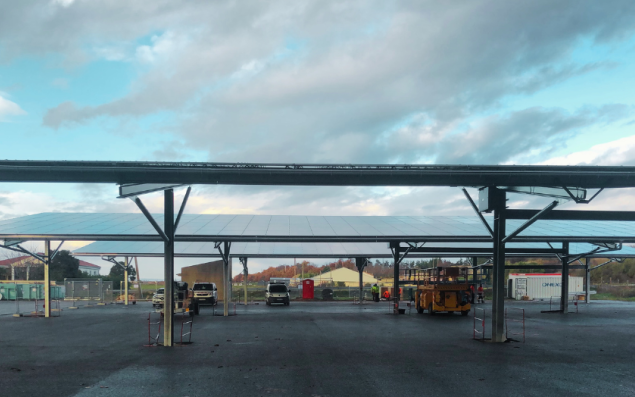 parking ombragé de 139 places. Cumulant une puissance de 500 kilowatts crête (KWc), les ombrières solaires couvrent l’équivalent des besoins électriques annuels de 300 personnes. Chargée du développement, de la construction et de l’exploitation de la centrale, Solarhona (43 salariés) en assurera également la maintenance et l’entretien durant ses trente années d’exploitation.